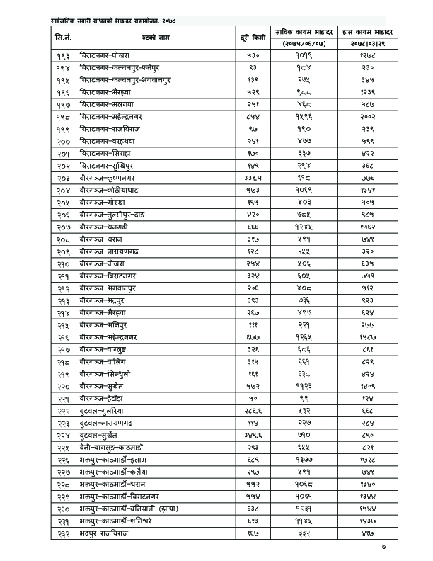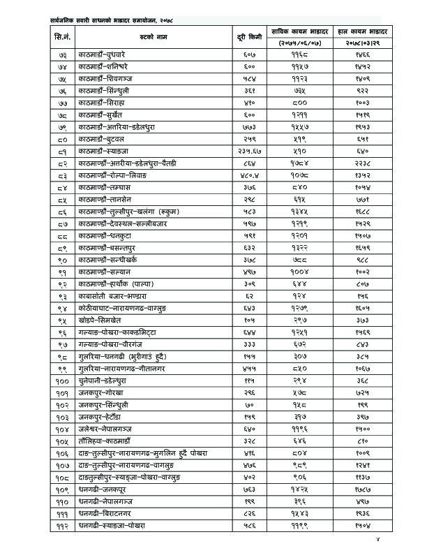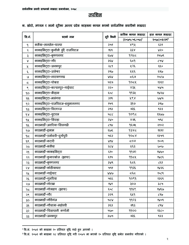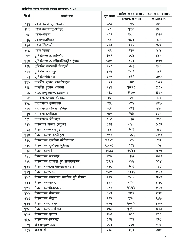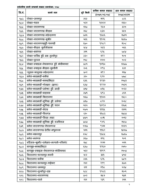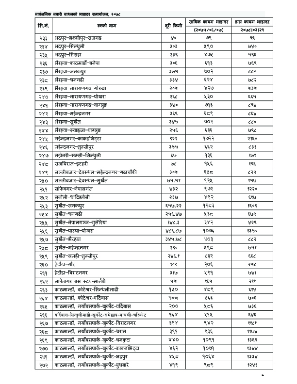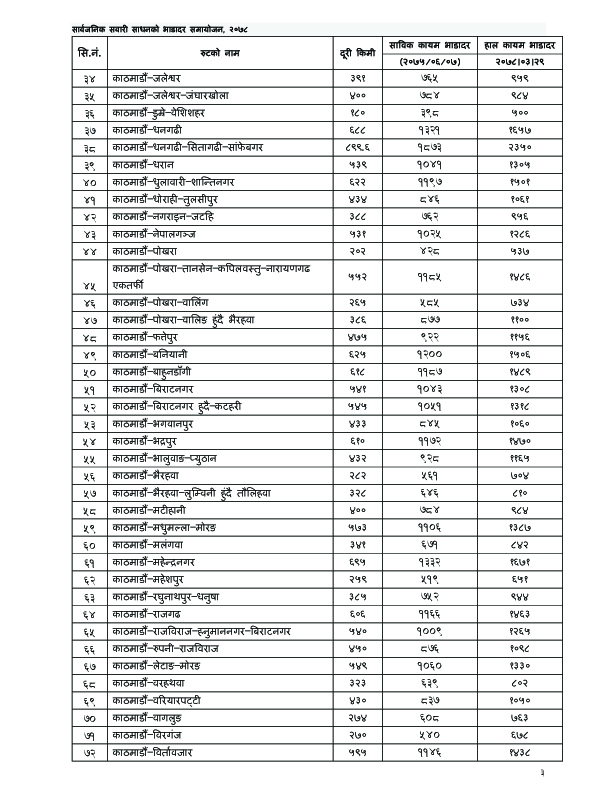 सार्वजनिक यातायातको नयाँ भाडादर सार्वजनिक (सूचीसहित)