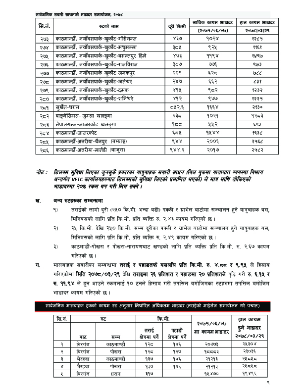 यस्तो छ देशभरीका रुटमा भाडादर :